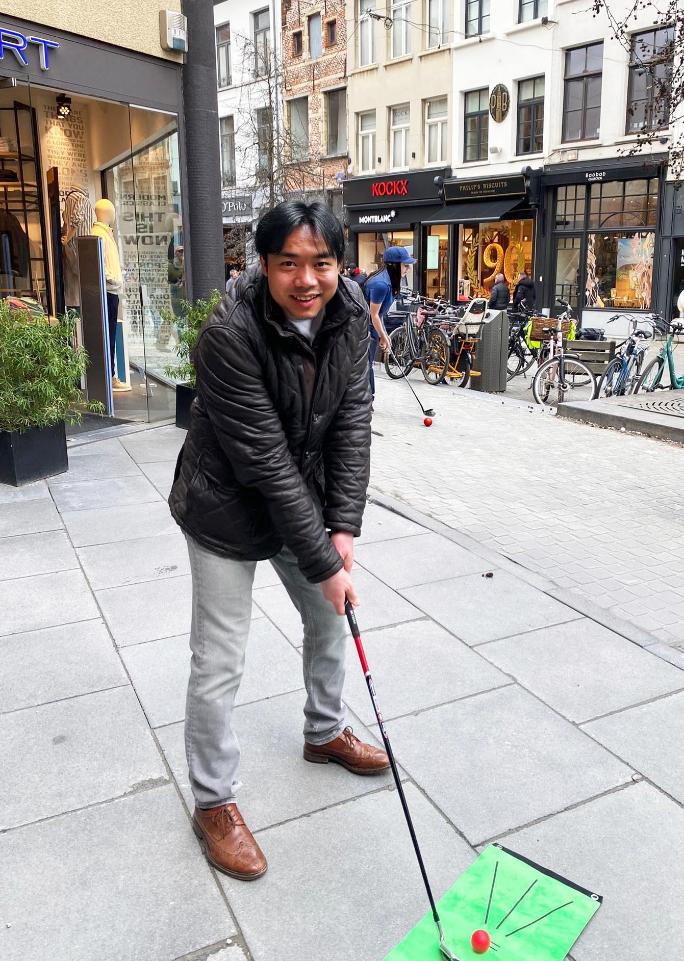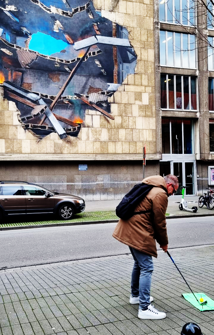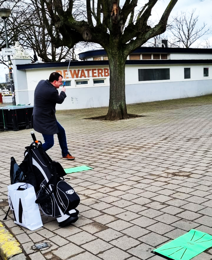 In de middeleeuwen werd “colf” al in de stad gespeeld… tot het te wild werd met die zware ballen en men het spel naar buiten verbande. In de jaren ’90 dook het alternatieve broertje van golf terug op in de stad. Niet met echte golfballen maar met zachte sponsen ballen.